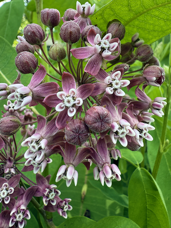 This hardy perennial produces rounded clusters of small, sweetly scented pinkish-purple flowers from June to August. The nectar is an important food source for native bees, bumblebees, honeybees, monarchs, and other butterflies. Flowers are followed by large, bumpy seed pods that split open in fall to release 50 to 100 seeds, which can be easily collected and shared to propagate more plants. Milkweed leaves and stems exude a milky white sap when broken.