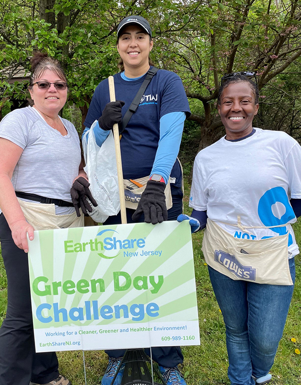 Our first group, TIAA, did trail maintenance along the Lake Hopatcong Trail Spur, starting at the Hopatcong Senior Center. Their tiny but mighty team of three trimmed branches and sticker bushes, removed invasive garlic mustard, and replaced/added trail blazes as needed. This give-back day was coordinated by Earthshare New Jersey as part of its Corporate Green Day Challenge, and we are so grateful to Earthshare for connecting us with TIAA, whose volunteers’ shirts say it all, “Be a difference maker.”