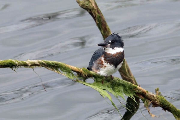 The smallest of the birds highlighted today, the belted kingfisher, is a songbird and a relative of the hummingbird. This doesn’t make them any less fierce, though. With a wingspan of just under 2 feet, these birds are still capable of swooping into the surface of the water, emerging, and flying away with their catch. Easily identified by their extremely fashionable mohawk, you can tell if the particular kingfisher you are looking at is male or female by looking to see if they have a brown-colored band along their chest in addition to their blue one (males only have the blue band). These birds are fiercely territorial to other kingfishers, with their territory sometimes spreading to half a mile along the coast of a waterbody.
