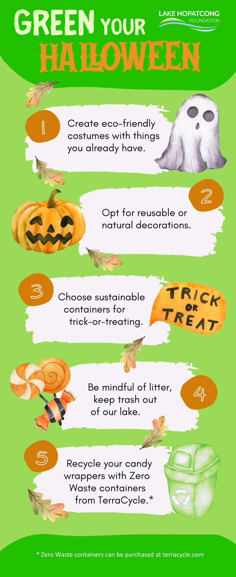 Between parties and trick-or-treating, Halloween can generate a surprising amount of trash. Do your part by cleaning up after festivities and encouraging others to do the same. Keeping litter out of storm drains helps protect Lake Hopatcong and our local watershed from pollution.