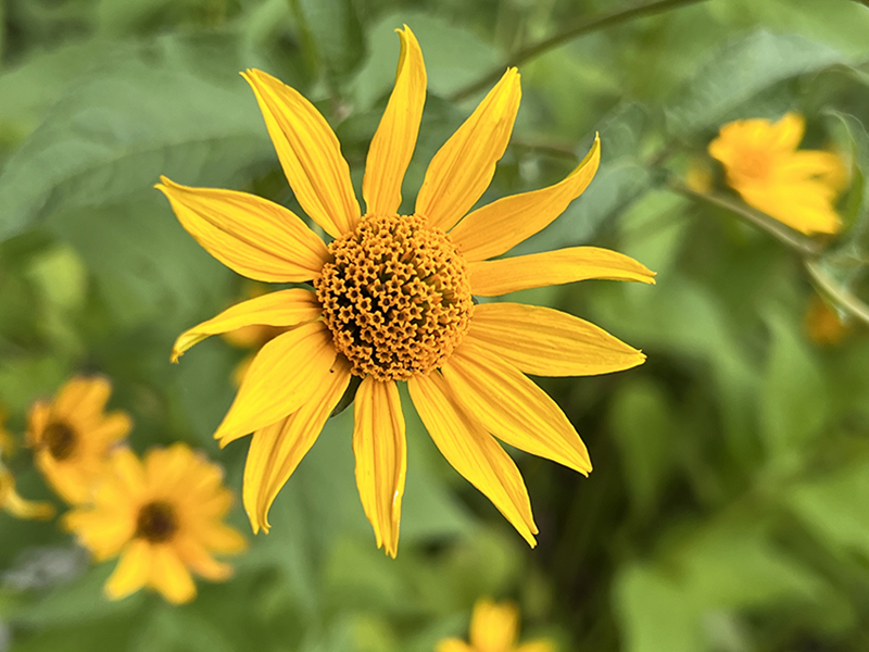 Oxeye Sunflower (Heliopsis helianthoides)Resembling a small version of a yellow sunflower, the oxeye sunflower is a very hardy plant that produces a profusion of bright yellow flowers throughout summer. Oxeye flowers attract butterflies, bees, and hummingbirds while the seeds attract birds.