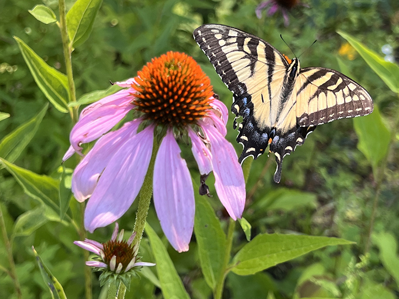 Purple Coneflower (Echinacea purpurea)Purple coneflower grows easily and blooms profusely for up to two months in mid to late summer and will sometimes re-bloom in the fall. The flowers are a favorite nectar source for hummingbirds, butterflies, and bees. In late summer, the seeds of the purple coneflower attract goldfinches and other birds.