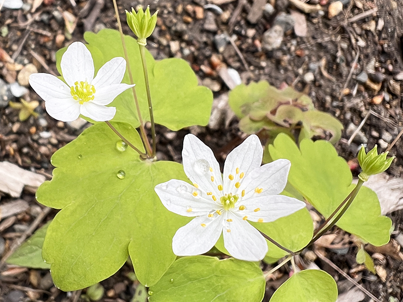 Rue Anemone (Thalictrum thalictroides)Rue anemone is an excellent early spring wildflower that thrives in native plant and rock gardens. It grows up to 9 inches tall and produces delicate white or pale pink flowers. Blooming throughout April and May, the plant goes dormant in summer and disappears until the following spring.