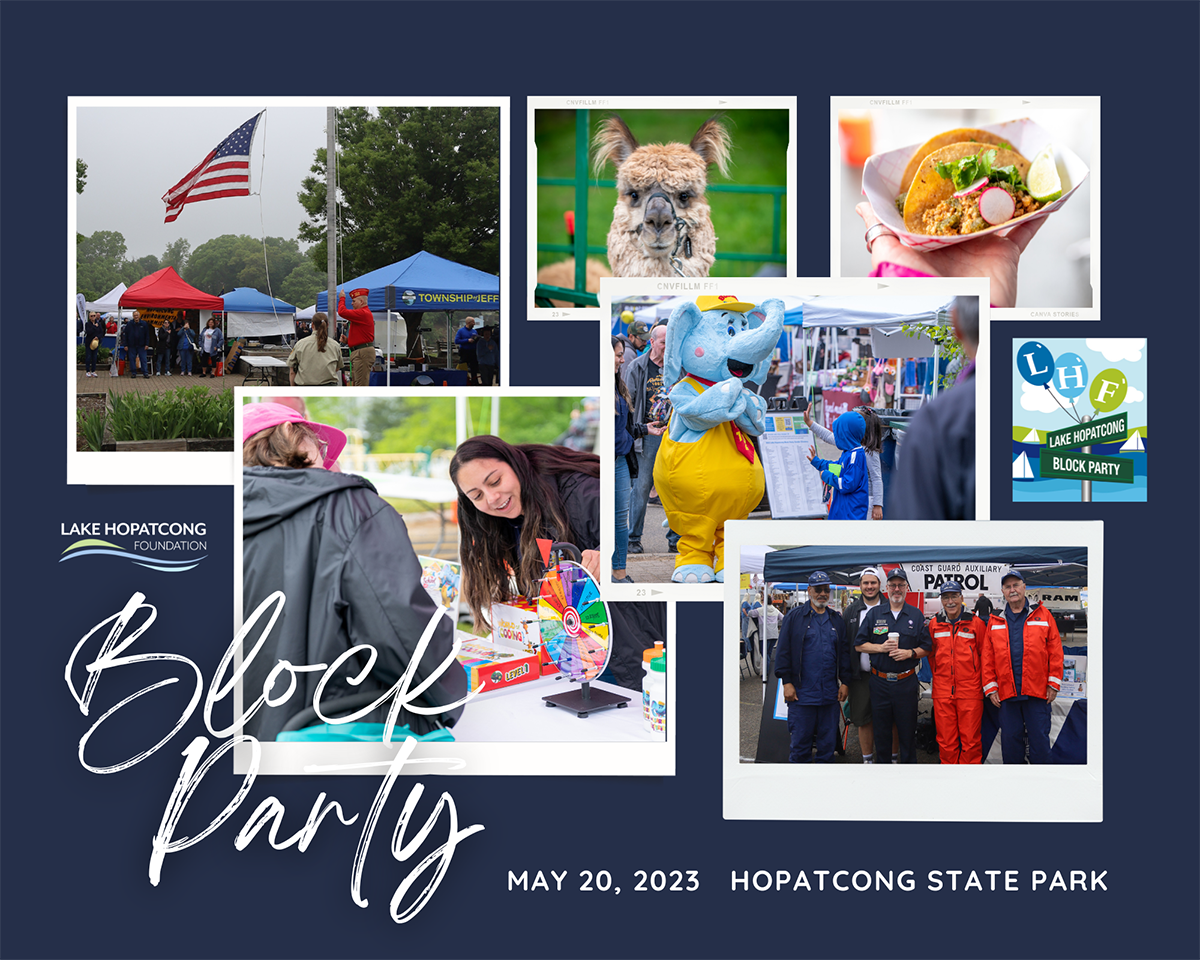 So, to all who chose to spend an imperfect weather day celebrating the lake with us, to the overwhelming number of beyond-dedicated volunteers who parked cars and took down tents in the rain, to Supervisor Laura Franek and the Hopatcong State Park staff, Commissioner Shawn LaTourette and the NJDEP, our mayors and elected representatives, our indefatigable vendors, and of critical importance, our unflagging sponsors, we say (at the top of our lungs) THANK YOU! You kept us smiling, and we hope to see you on Saturday, May 18, 2024, at our 11th Lake Hopatcong Block Party!