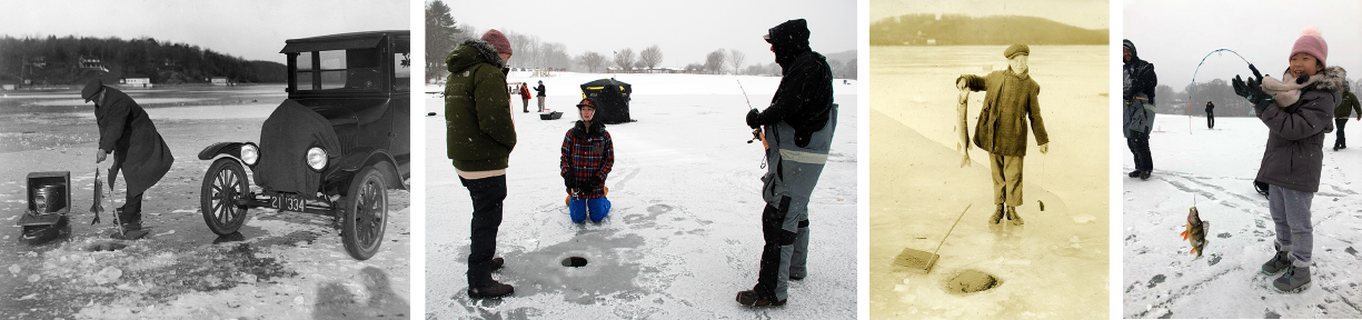 The ice has a history at the lake that predates us all. We have a Lake Hopatcong to enjoy thanks to the movement of glaciers during the Pleistocene era, some 125,000 years ago - which makes the historical jump to the last century feel quite small!. During the late 19th and early 20th centuries, ice was big business at Lake Hopatcong. The ice industry employed hundreds of workers each winter, and trains carried tons upon tons of ice to urban areas, like New York City. Some ice was loaded into ships in the New York Harbor and transported as far as the Caribbean and South America! Ice was a critical part of life back before the advent of electric refrigeration. Ice sat in ice boxes, keeping one’s food cold. The harvest, transport, and sale of natural ice for commercial purposes revolutionized the food industry and lead to the introduction of new foods and beverages, previously unavailable for local consumption.
