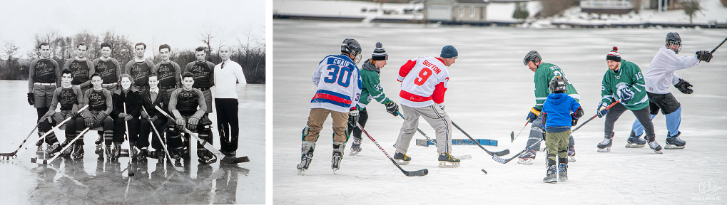 Going back a century, River Styx, which is shallow and among the first areas of the lake to freeze in winter, has long been a sought-after spot for ice hockey and, in the heyday of winter sports on the lake, featured competitive men’s ice hockey leagues. Today, you can find pick-up games of ice hockey played in front of homes and in coves all around the lake. Just one of the groups you can catch playing on Sundays is the “Hopatcong Pond Hockey Club”, formerly Patrick’s Pub Hockey Club: a group of friends from Elba Point, Crescent Cove, Byram Cove, and Sparta, keeping the joy of ice hockey alive on Lake Hopatcong!