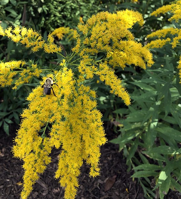 Blue-stemmed goldenrod (Solidago caesia) prefers partial sun to shade, grows to three feet tall, and produces clusters of yellow flowers that bloom all along the purplish stem. Once under consideration to become the national flower, goldenrod produces much of the color along American roadways from August to October.Native Americans used the leaves for a tea and medicinally to treat intestinal gas, wounds, and toothache. Goldenrod hosts the caterpillars of several moth species, butterflies and bees seek nectar from its flowers, and songbirds eat the seeds. It is a long-held misconception that goldenrod causes hay fever or allergies. It will grow easily in your garden and deer generally ignore it.