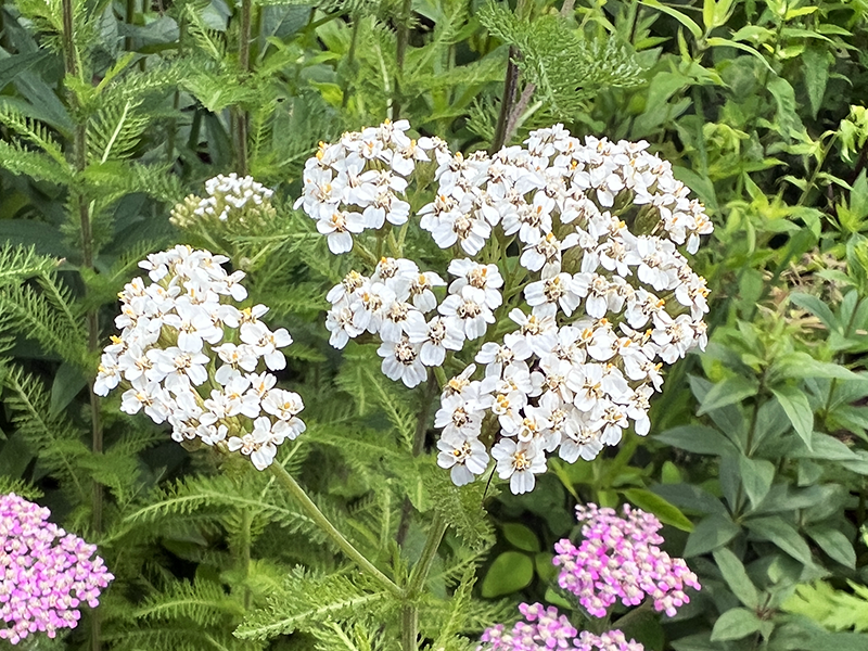 Yarrow (Achillea millefolium)Yarrow has showy spring and summer flowers on soft, evergreen fern-like foliage. Its leaves were used by Native Americans to stop bleeding and heal wounds and infections. Yarrow attracts butterflies, pollinators, and many beneficial insects and repels some insect pests, making it an excellent companion plant in vegetable gardens.